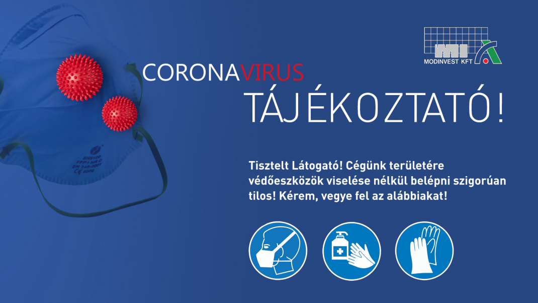 Tájékoztatjuk minden kedves Partnerünket, hogy a Modinvest Kft. a kialakult járványhelyzet ellenére változatlanul végzi munkáját és minden megszokott szolgáltatásunk fennakadás nélkül üzemel. Kollégáink otthonról illetve a munkahelyen végzik munkájukat, telefonon, e-mailben, vagy egyéb online kommunikációs eszközzel állunk rendelkezésükre! Értesítjük Önöket, hogy a kialakult egészségügyi helyzet okán, a munkatársaink és az Önök megbetegedésének megelőzése és egészségének megőrzése érdekében, a székhelyre (6400 Kiskunhalas Kéve utca 39.) –előre meg nem határozható ideig- kizárólag a Modinvest Kft munkavállalói léphetnek be. A papír alapú dokumentumok esetében az ügyintézési idő 8 nappal megnövekszik.