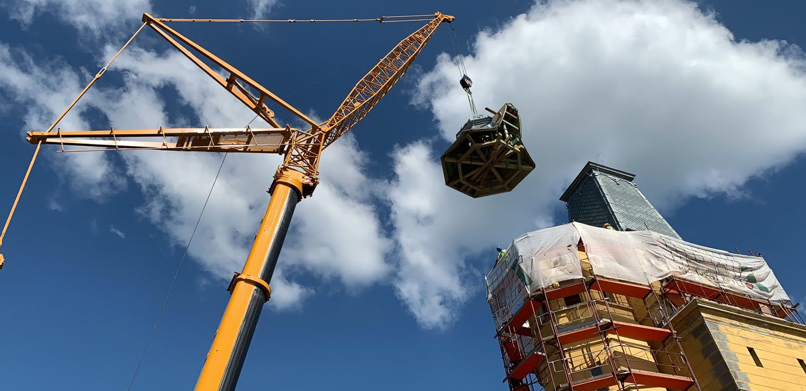Rövid látványos videóval és pár fényképpel nézhetitek meg a szabadkígyósi Wenckheim-kastély toronyépületének toronysisak beemelését az épület tetejére.
