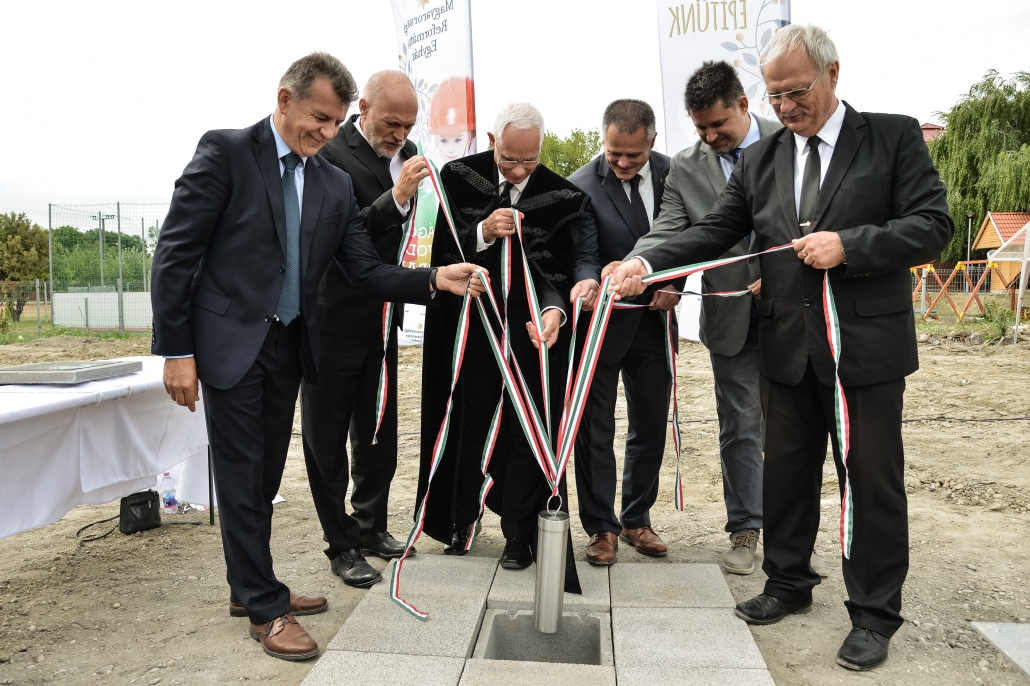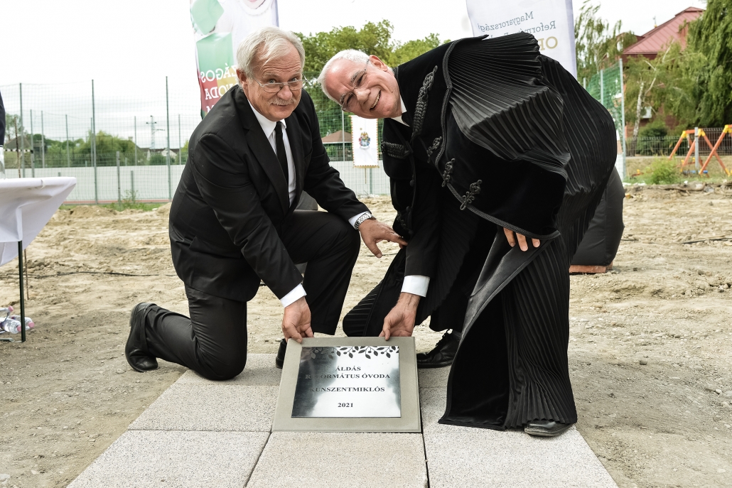 A megszólalók mellett Pintér Gyula, a Kunszentmiklósi Református Egyházközség lelkésze, ifj. Németh Miklós, a kivitelező Modinvest Kft. ügyvezetője és ifj. Szőke Imre gondnok időkapszulát helyezett el, majd Balog Zoltán püspök és Pintér Gyula, a Kunszentmiklósi Református Egyházközség lelkésze letették az óvoda alapkövét.