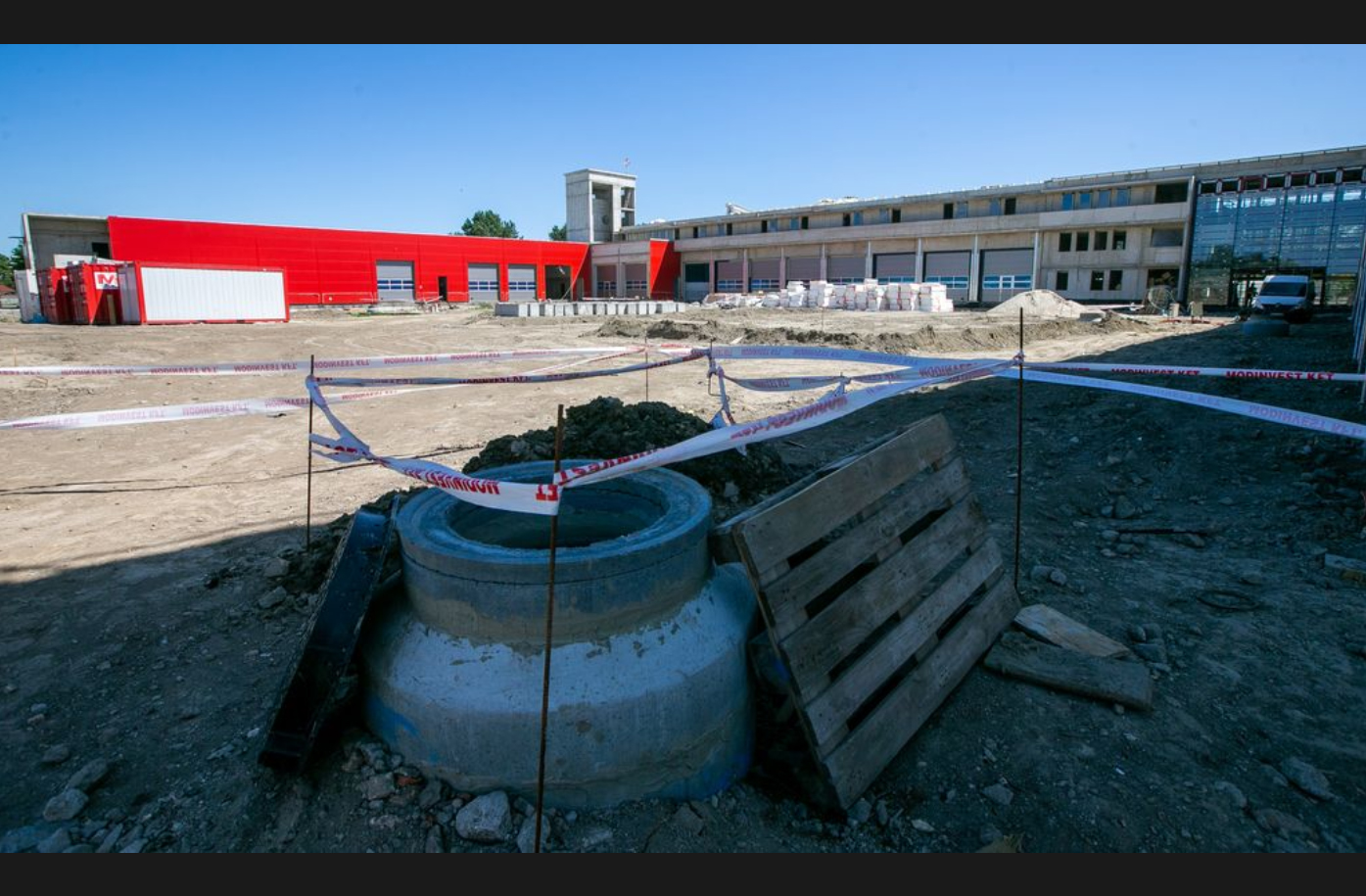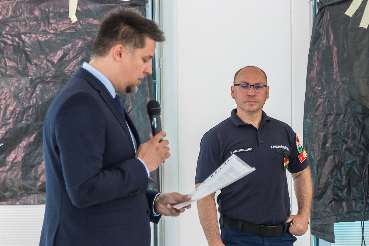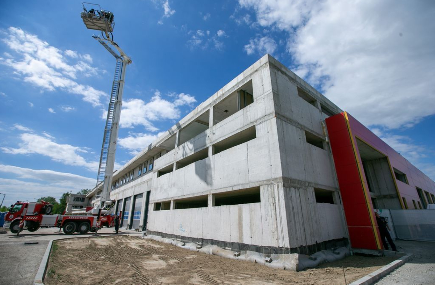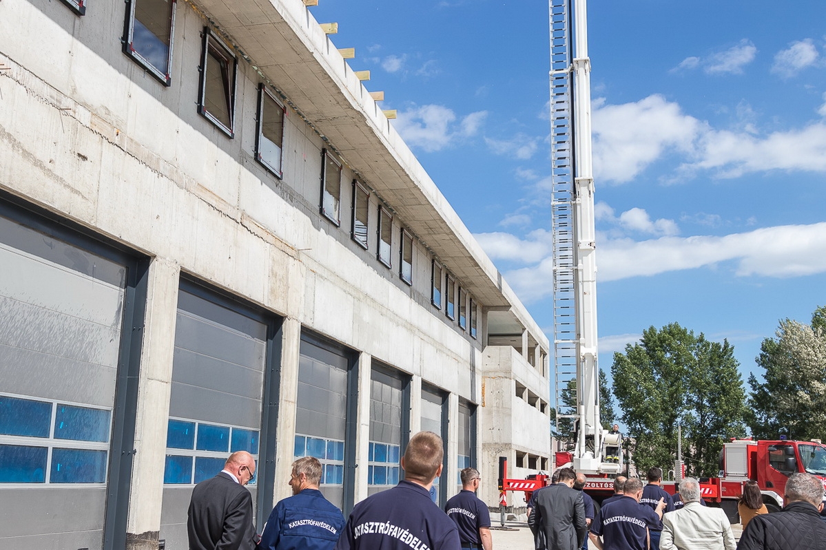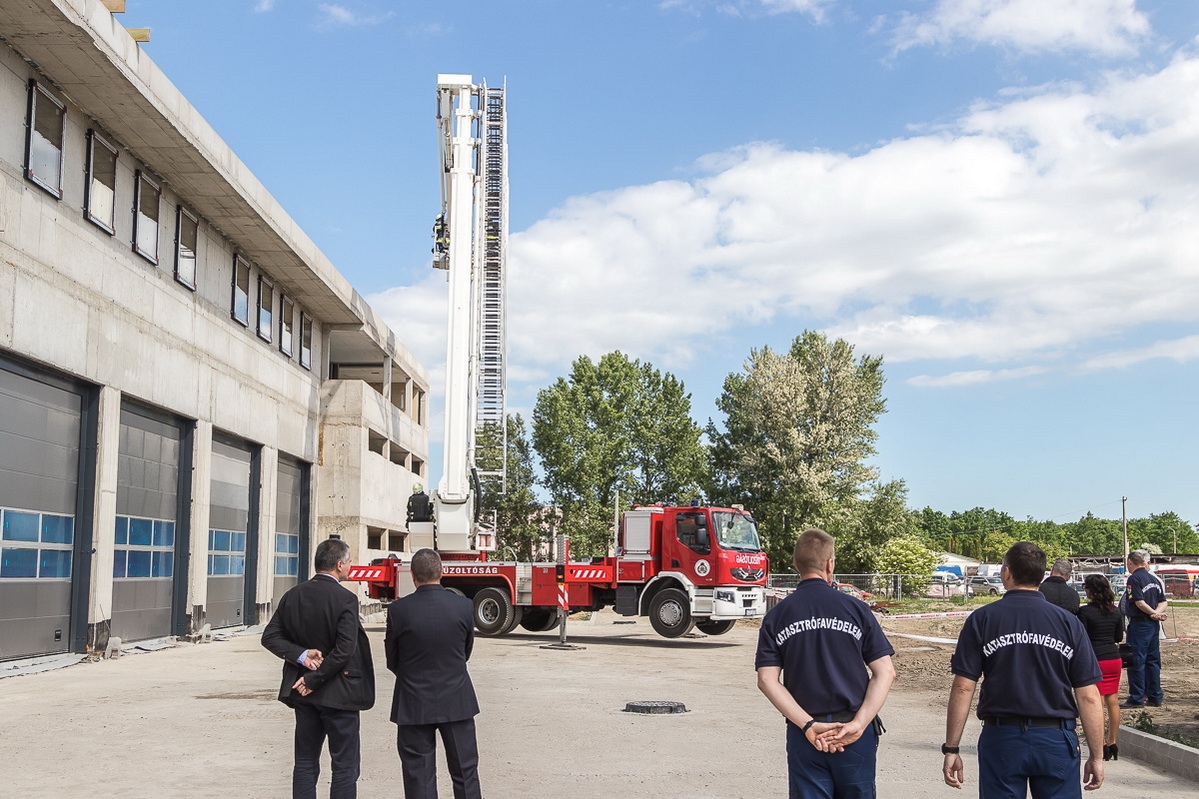 Az építkezés ütemesen halad, egyes épületrészeknél már elektromos és gépészeti alapszerelések, gipszkartonfalak építése, glettelése, festése történik. A létesítmény elérte a legmagasabb szintjét, hiszen elkészült a tömlőszárító torony is, így a katasztrófavédelem bokrétaünneppel egybekötött sajtóbejáráson mutatta meg a komplexum jelenlegi állapotát a média képviselőinek.