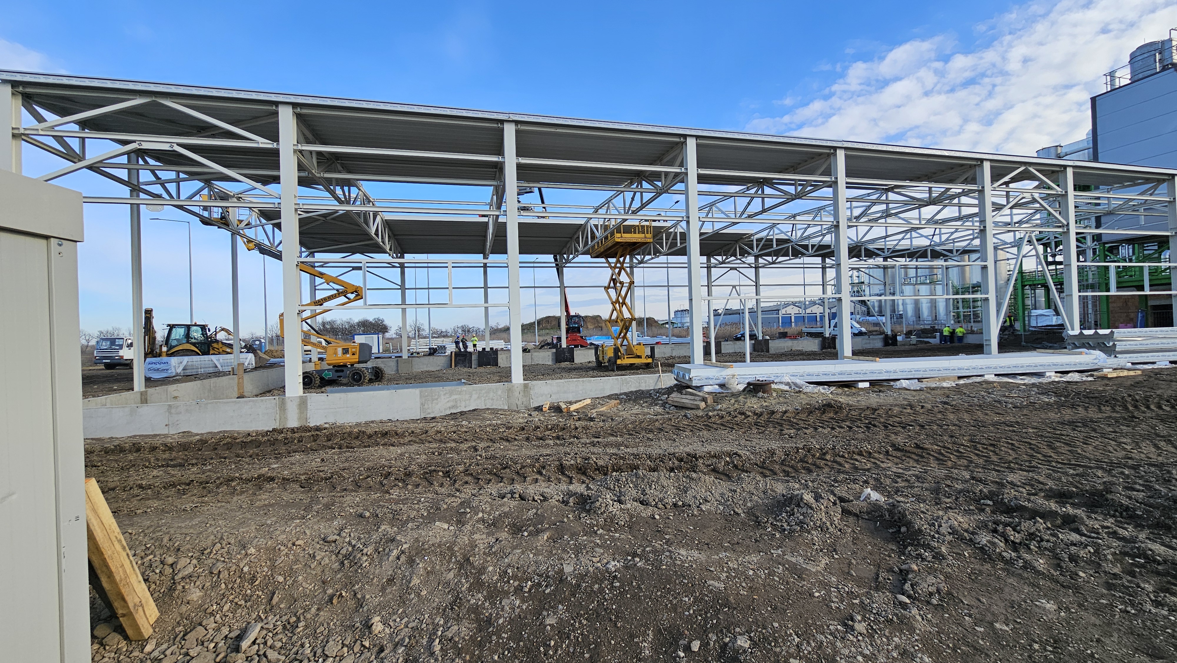 Cégünk kivitelezi zöldmezős beruházásként a KALL Ingredients Kft. tiszapüspöki keményítő szárító üzem 660 jelű üzemrészén belül létesítendő 1146,43 nm-es raktárépületet és hozzá kapcsolódó előépítményt a teljes belső úthálózattal és közműfejlesztéssel. A raktár épület acél vázszerkezetű, szendvicspanel burkolatú földszintes épület. Az előépítmény tégla falazatú, vasbeton födémes földszintes épületrész.