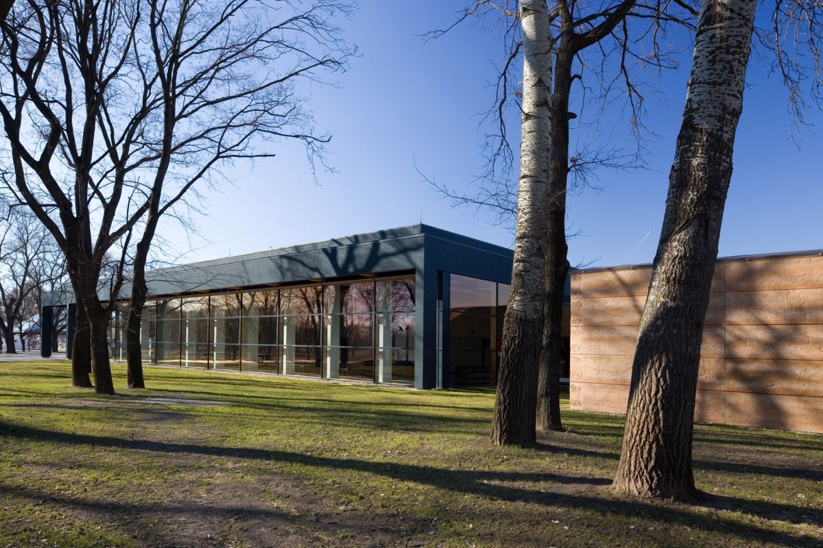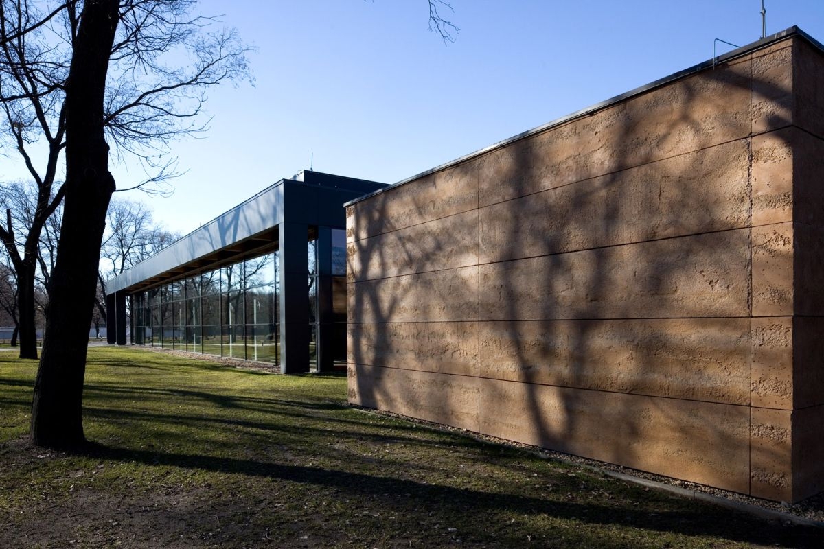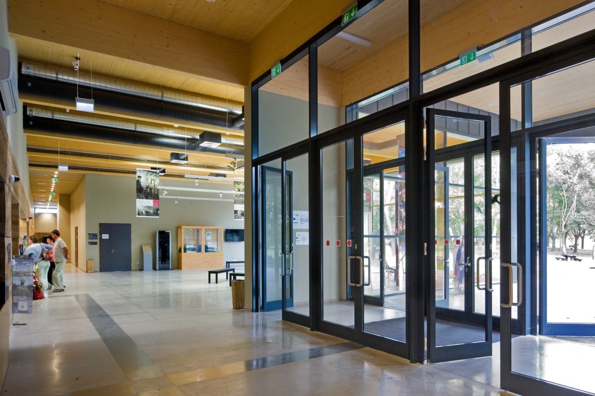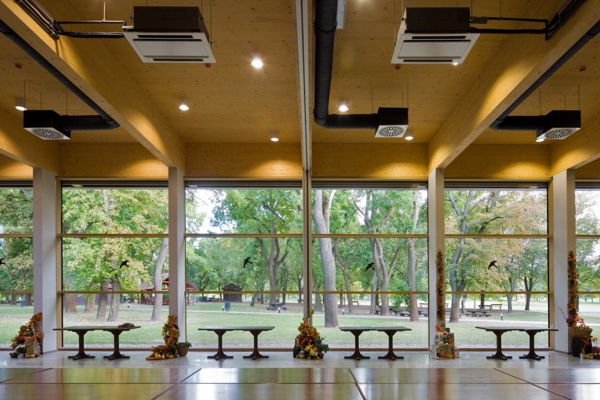 A konferenciaterem 800 m2-es gerendás födémének fa keretszerkezete és a rétegragasztott tömör fa födémszerkezete a természetes anyagok használatát erősítik. A parapet nélküli nagy üvegfelületek az átmenetet és kapcsolatot biztosítják a belső terek és a külső környezet között. A megvalósítás során a megrendelő több helyen belenyúlt a tervekbe, így nem valósult meg az elképzelt zöldtető, illetve számos helyen a fából tervezett pillérszerkezet és keretállások végül betonból épültek meg. Az építészeknek azonban sikerült megakadályozniuk több, az üvegfal előtt álló fa kivágását, amelyek egyébként hatékonyan védik az épületet a napfény elől. A tervben árnyékolók is szerepeltek, de a megvalósításból ezek is kimaradtak. Összességében azonban egy kellemes léptékű, az elképzelt szellemiséget harmonikusan megvalósító épület jött létre, ahol a kortárs megoldásokba jól illeszkednek az újragondolt hagyományos építészeti elemek.