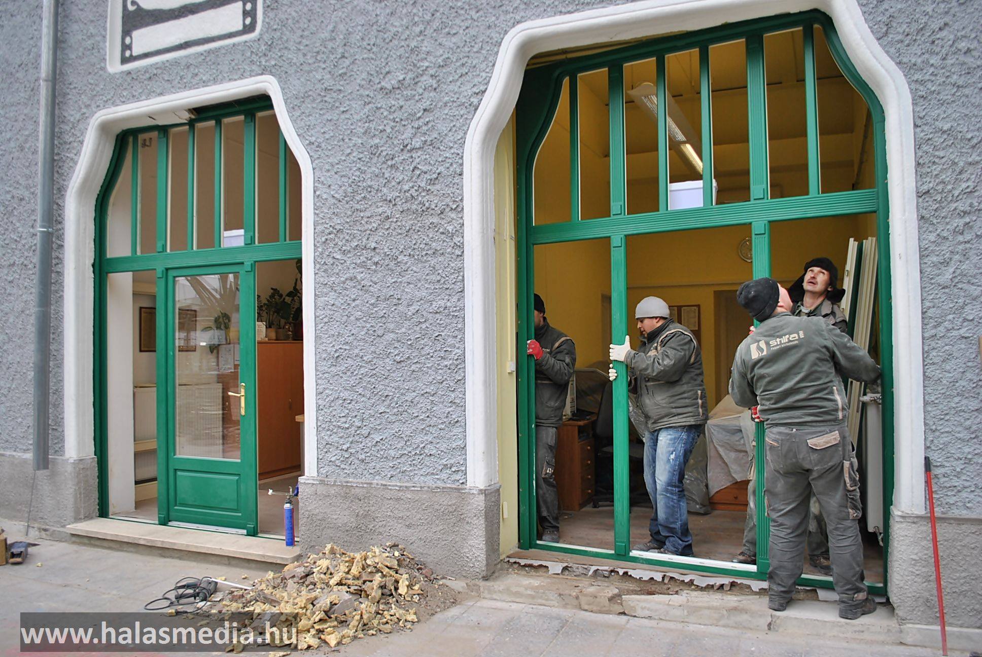 Búcsúzik a régi, barna ajtófélfáktól a halasi városháza épülete. A tervek szerint a héten lecserélik az épület főtér felőli oldalán a régi portálokat, aztán a Hősök tere felőli fronton folytatják a munkát – tudtuk meg Papp Gyulától, a városháza megújítási program műszaki ellenőrétől. A műemléki előírásokhoz igazodnak az új keretek, melyeket információink szerint Kecelen a Stilfa-MI Kft. gyártotta. Formában és színben is egységesek lesznek a portálok, és a tervek szerint a homlokzaton megjelenő reklámfelületeteket is szabályozzák, hogy még harmonikusabb legyen az összkép.