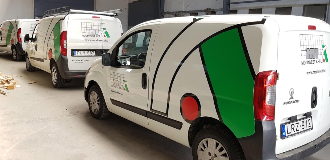 Erre 2019 év elején került sor. Terveink között szerepel a gépjárműpark bővítése és minőségi cseréje, illetve az alkalmazotti létszám növelése. Ehhez igazodva építésvezető kollégáinknak illetve projektvezetőinknek teljesen új és munkakörüknek megfelelő kishaszon és személygépjárműveket szereztünk be. Így az új gépjárművek jelentősen hozzájárulnak ahhoz, hogy még hatékonyabbá és biztonságosabbá, környezetbarátabbá váljon vállalatunk tevékenysége. Az ez évtől egyben új formai jegyekkel álltak munkába ezek a munkaszközök, melyeket természetesen a Modinvest Kft. reklámüzletág alakított ki és kivitelezett saját erőből.