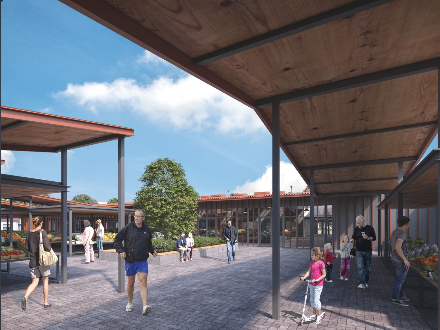 Az új épület a Miklós utcai telekhatárra épül, emellett megújul a Bajcsy Zsilinszky utcán található piac környezete is: a vásártér mellett található parkoló, zöldterület, valamint a Szenes utca, az Alföldi tér és a Vöröshíd sétány is. Összesen 4 ezer négyzetméter fedett rész és 14 ezer négyzetméter közterület újulhat meg.